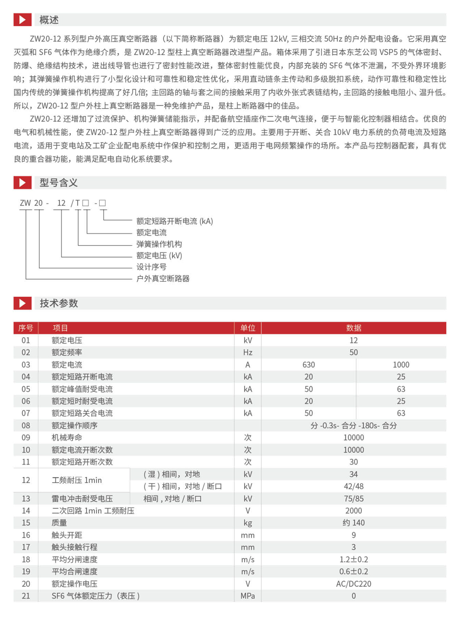 ZW201-12户外高压真空断路器